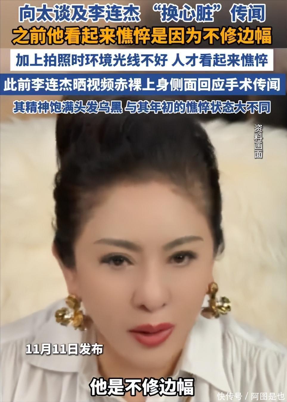 之前李连杰被传出去世传闻的时候,就是向太第一时间站出来回应的。