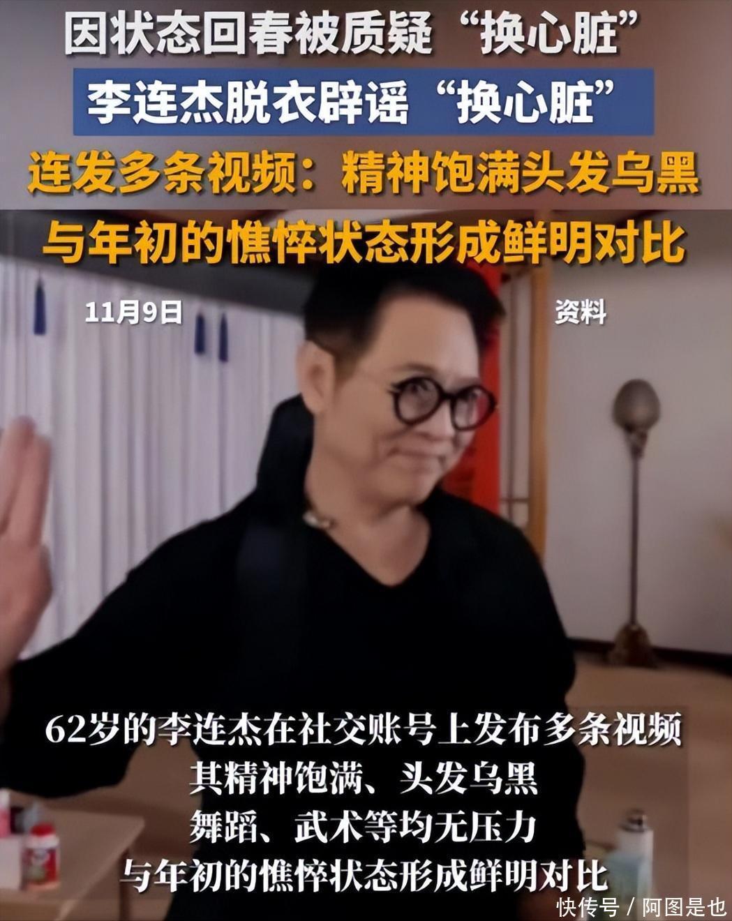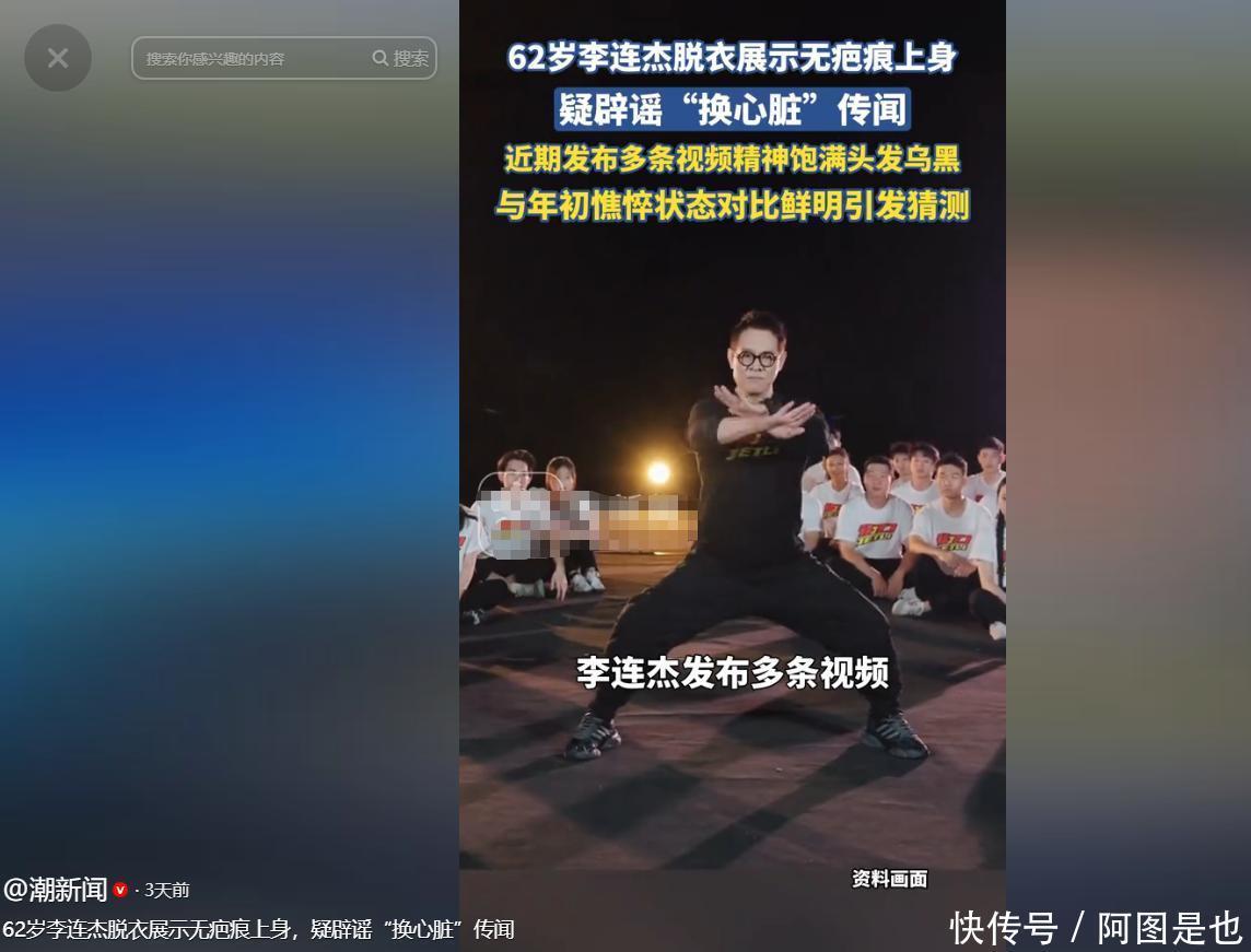 62岁李连杰脱衣展示无疤痕上身,谣“换心脏”传闻 潮新闻